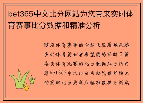 bet365中文比分网站为您带来实时体育赛事比分数据和精准分析